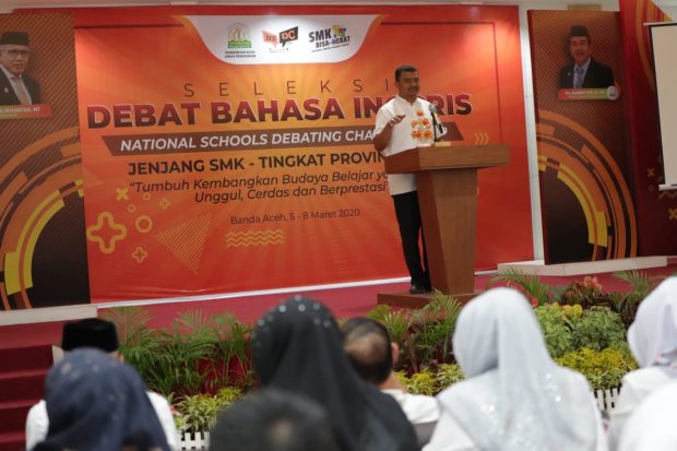 Jaringanpelajaraceh.com–Banda Aceh. Dalam rangka mewujudkan peningkatan kompetensi para siswa SMK dalam penguasaan bahasa asing, Dinas Pendidikan Aceh menggelar kegiatan Lomba Debat Bahasa Inggris atau National Schools Debating Championship (NSDC). Kegiatan tersebut dibuka secara resmi oleh sekretaris Dinas Pendidikan Aceh, Teuku Nara Setia, SE, Ak, M.Si pada jumat (6/3/2020) di Hotel Madinatul Zahra, Jalan Dr. Mr. T. Mohd Hasan Kabupaten Aceh Besar.
