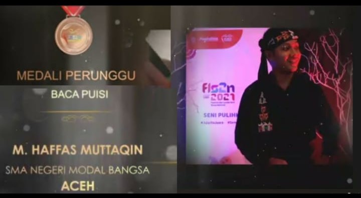 Banda Aceh – Muhammad Haffas Muttaqin, Siswa SMA Negeri Modal Bangsa Aceh tampil memukau dan berhasil menyabet medali perunggu pada bidang lomba cipta baca puisi di Festival dan Lomba Seni Siswa Nasional (FLS2N) tingkat nasional tahun 2021 yang dilaksanakan secara daring.