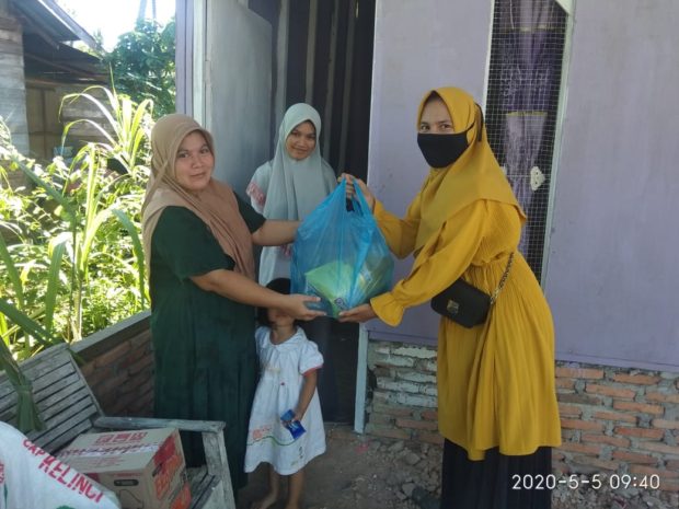 JARINGANPELAJARACEH.COM-ACEH TIMUR. Warga SMK Negeri Taman Fajar Kabupaten Aceh Timur memberikan bantuan sembako pada siswa kurang mampu yang terdampak pandemi covid-19, pada Selasa (05/05/2020).