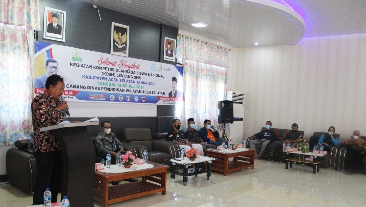 Jaringanpelajaraceh.com I TAPAKTUAN – Kepala Cabang Dinas Pendidikan (Kacabdindik) Wilayah Aceh Selatan, Annadwi SPd MM membuka kegiatan Kompetisi Olahraga Siswa Nasional (KOSN) tingkat Kabupaten Aceh Selatan jenjang Sekolah Menengah Kejuruan (SMK), Kamis (01/07/2021).