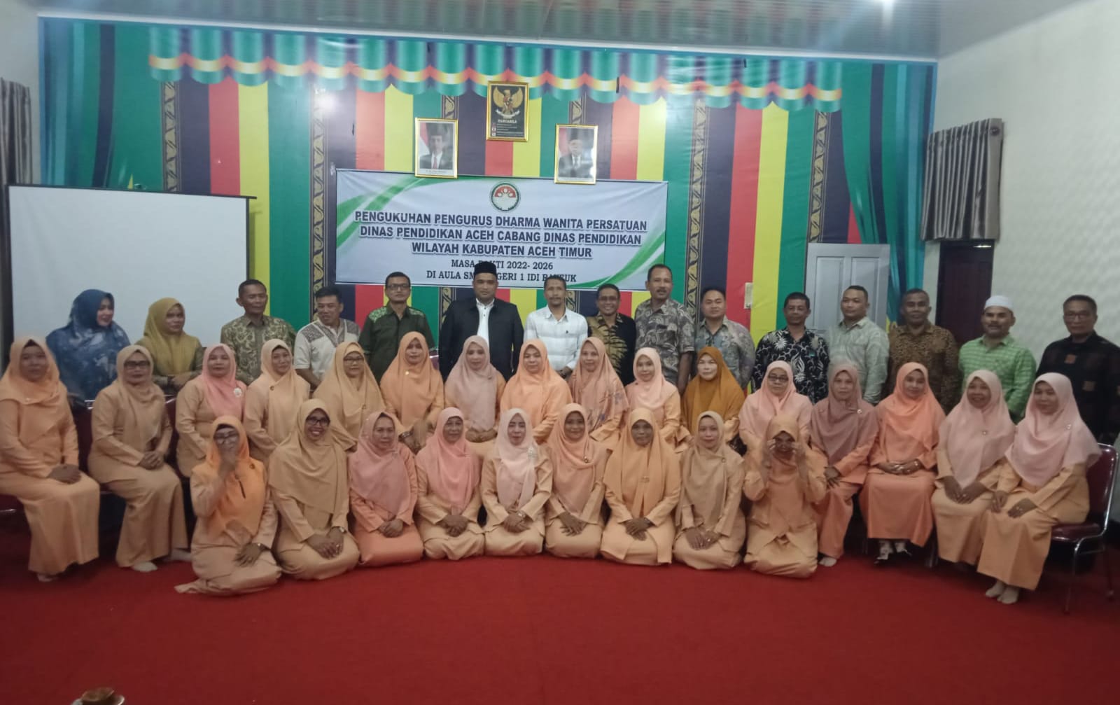 Idi – Kepala Cabang Dinas Pendidikan (Kacabdindik) Wilayah Aceh Timur melakukan pengukuhan Pengurus DWP (Dharma Wanita Persatuan) Cabang Dinas setempat.