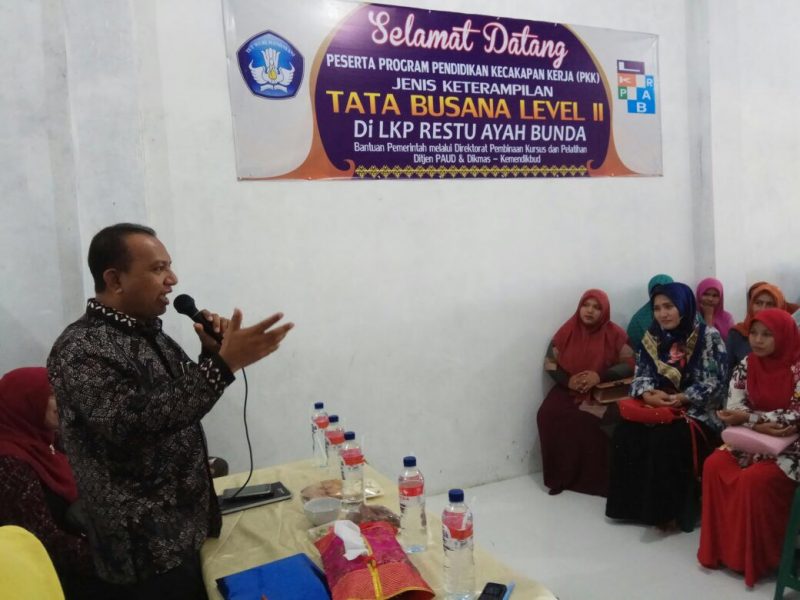 Jaringanpelajaraceh.com-Aceh Besar – Balai Pengembangan Pendidikan Anak Usia Dini dan Pendidikan Masyarakat (BP PAUD Dikmas) Aceh kembali memberikan Pendidikan Kecakapan Kerja (PKK) kepada masyarakat prasejahtera.