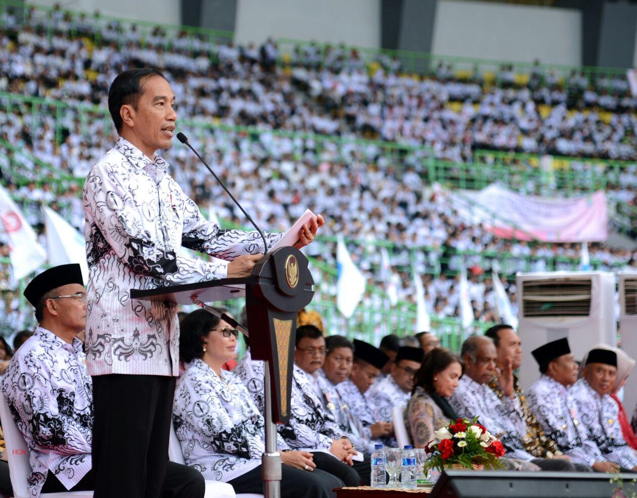 Hal ini disampaikan Kepala Negara di hadapan 38 ribu guru dari seluruh Indonesia yang hadir saat memperingati Hari Guru Nasional sekaligus Hari Ulang Tahun (HUT) Persatuan Guru Republik Indonesia (PGRI) yang ke-72, di Lapangan Stadion Patriot Candrabhaga, Bekasi, Jawa Barat, pada Sabtu, 2 Desember 2017.