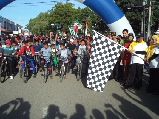 Amatan Kabar Bireuen para peserta oleh raga sepeda santai dan jalan santai diikuti masyarakat Kabupaten BIreuen dan dari luar Kabupaten Bireuen.