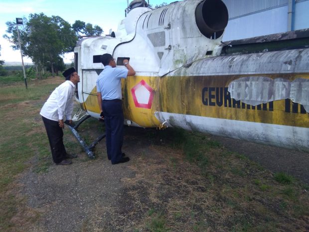 Kepala SMKN Penerbangan Aceh dan Danlanud SIM melihat kondisi Helicopter, yang bisa digunakan untuk alat praktek siswa