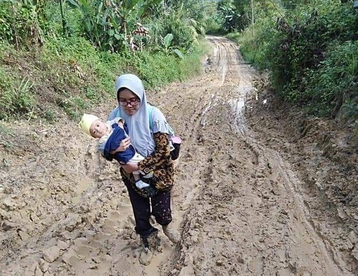 Bila hujan melanda, jalan tanah menuju ke sana akan berlumpur. Hanya mobil jenis double cabin yang bisa menembus lumpur tebal tersebut.