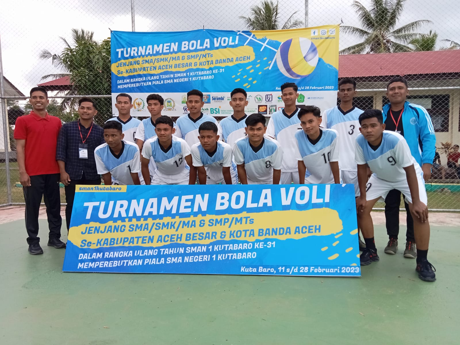 Aceh Besar – Tim Bola Voli Putra SMKN 1 Al Mubarkeya menang telak atas Tim Voli Putra SMAS Ishafuddin, di duel sengit turnamen Bola Voli SMAN 1 Kutabaro Aceh Besar, Senin (13/2/2023).