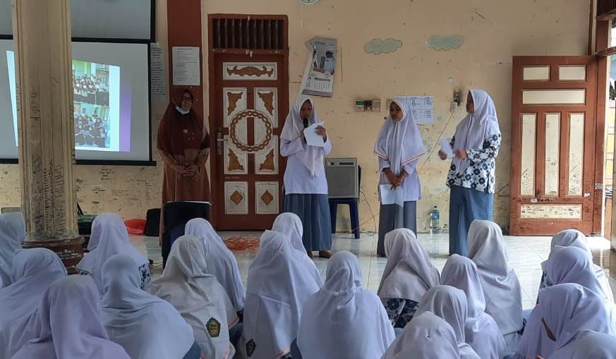 Jaringanpelajaraceh.com I Lhoksukon – Coach Satu Kelas Satu Buku (SAKESAKU) IGI Aceh Utara, Sitti Aminah, menyambangi SMAS Raudhatul Fuqara Paya Bakong untuk memberikan memotivasi siswa menulis, Kamis (23/06).